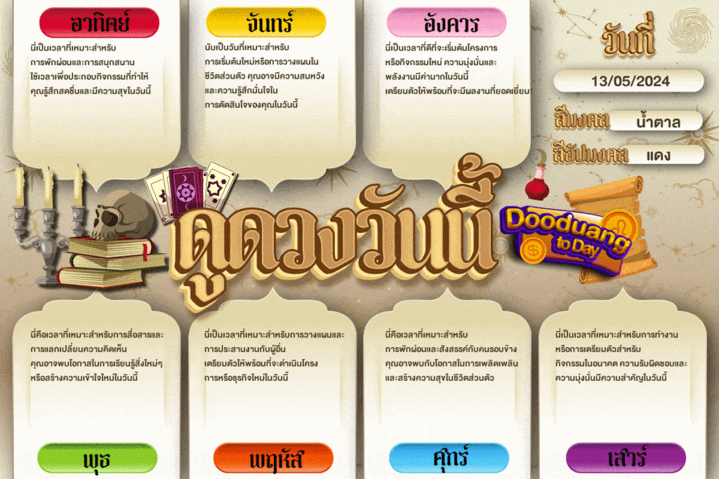 ดูดวงวันนี้13-05-67 เช็คดวงตามลักษณะประจำวัน บอกสถานะ หน้าที่ การงาน การเงิน สุขภาพ รู้ก่อน แก้ไขทัน เสริมดวงก่อนไคร แน่นอน