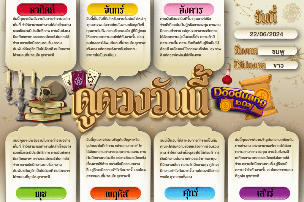 ดูดวงวันนี้22-06-67 เช็คดวงตามลักษณะประจำวัน บอกสถานะ หน้าที่ การงาน การเงิน สุขภาพ รู้ก่อน แก้ไขทัน เสริมดวงก่อนไคร แน่นอน